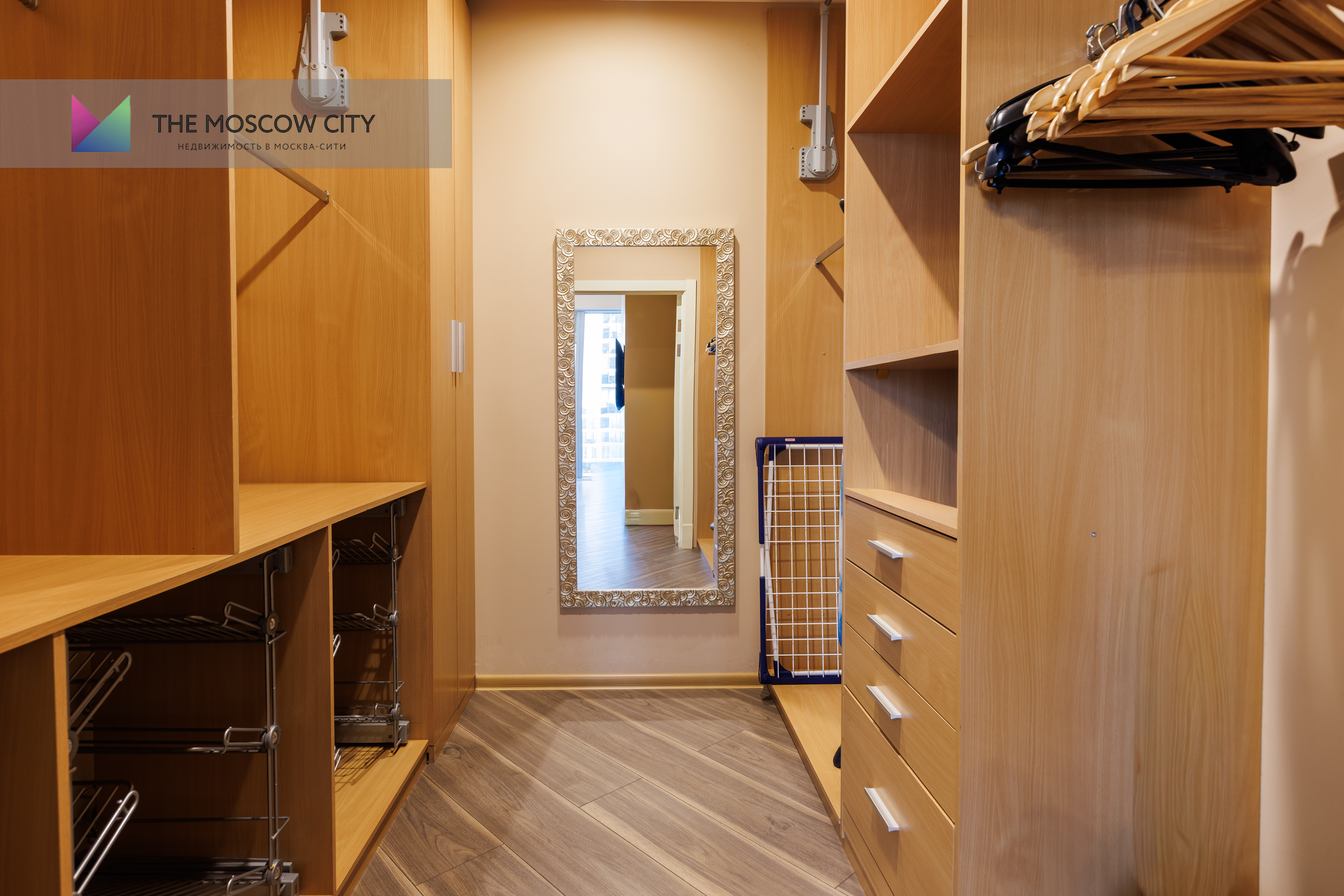 2х-комнатные апартаменты, кухня-студия, совмещенная с гостиной комнатой,  спальня с просторным сан. узлом, гостевой сан.узел, гардеробная, постирочная. Обустроен  эксклюзивной мебелью и современной встроенной техникой. Панорамные окна выходят на башни Делового комплекса.