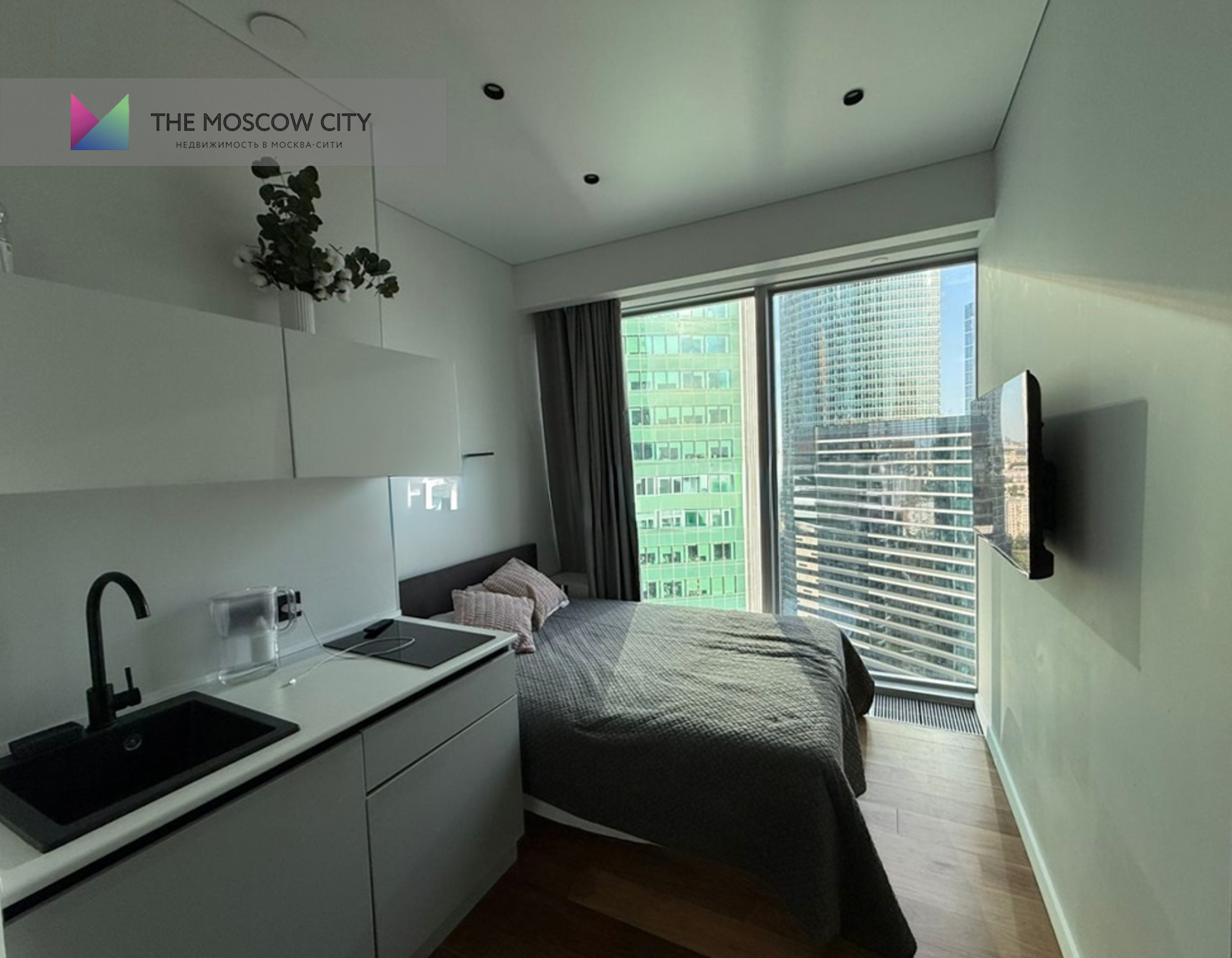 Спальное место с видом на башни Москва-Сити